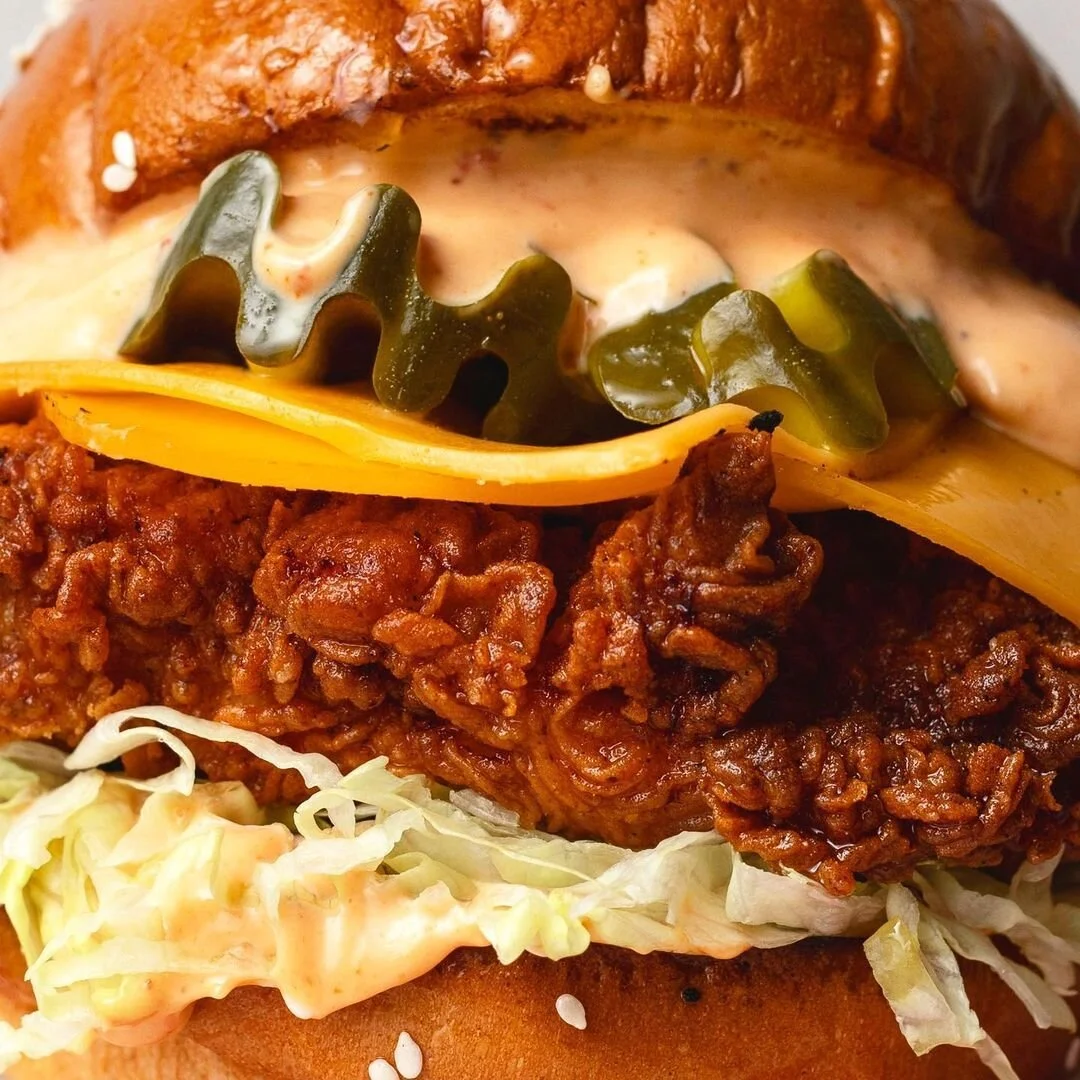 Burger cheese, caramelised onions, pickles and burger sauce.